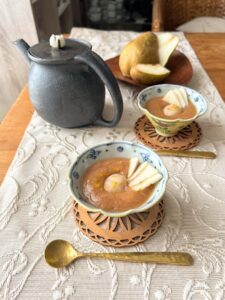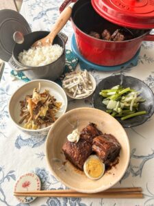 今月の前半staub12: 創作和食テラ屋 ![]() ![]() ・豚バラの赤ワイン味噌角煮 ・葉野菜の重ね蒸し ・焼きじゃがきんぴら ・洋梨のクリーム白あん 創作和食テラ屋へようこそ ワインにも合う和食のようなイメージで定食和食を作りました。赤ワインと赤味噌のブレンドでコク深い角煮を 📖豚バラの扱い、staubでの煮方、staub茹で卵の作り方、仕上げ方 白菜、小松菜、かぶの葉の水分を活かした重ね蒸し、風味の付け方や仕上げ方がポイント! 📖野菜の下準備、風味の付け方、仕上げ方 きんぴらにポテサラを!冬仕様に定番おかずのきんぴらをまったりとポテサラでアレンジします 📖きんぴらの作り方、焼きじゃがいもの作り方、仕上げ方 洋梨を和デザートに、甘さはサワークリームで調節します 📖洋梨ピュレの作り方、白あんの使い方、和デザートの作り方、仕上げ方 | |