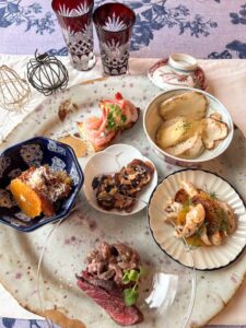 今月の前半staub12: 創作和食テラ屋 ![]() ![]() ・豚バラの赤ワイン味噌角煮 ・葉野菜の重ね蒸し ・焼きじゃがきんぴら ・洋梨のクリーム白あん 創作和食テラ屋へようこそ ワインにも合う和食のようなイメージで定食和食を作りました。赤ワインと赤味噌のブレンドでコク深い角煮を 📖豚バラの扱い、staubでの煮方、staub茹で卵の作り方、仕上げ方 白菜、小松菜、かぶの葉の水分を活かした重ね蒸し、風味の付け方や仕上げ方がポイント! 📖野菜の下準備、風味の付け方、仕上げ方 きんぴらにポテサラを!冬仕様に定番おかずのきんぴらをまったりとポテサラでアレンジします 📖きんぴらの作り方、焼きじゃがいもの作り方、仕上げ方 洋梨を和デザートに、甘さはサワークリームで調節します 📖洋梨ピュレの作り方、白あんの使い方、和デザートの作り方、仕上げ方 | |
