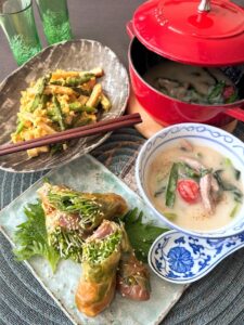 今月の前半staub12カ月:香る春和食 ![]() ![]() ・春のトマトすき焼き ・空豆ご飯 ・新玉ねぎの春巻き ・不知火の米粉ケーキ すき焼きも冬のイメージが強いのですが、春バージョンに仕上げます。みずみずしい若いトマトのソースでいただきましょう 📖春のすき焼きの作り方、仕上げ方、旨味の出し方 ホクホク空豆は春の香り、ご飯と共に 📖空豆の加熱の仕方、混ぜご飯の作り方 甘い新玉ねぎは加熱と共にさらに増します、クミンの香りと共にジューシーな玉ねぎをパリパリ春巻きで 📖春巻きの作り方、加熱の仕方、仕上げ方 さわやかな酸味と甘みの不知火、米粉の弾力を味方に果肉と共にケーキに仕上げます 📖不知火ソースの作り方、シンプル米粉ケーキの作り方、仕上げ方 | |