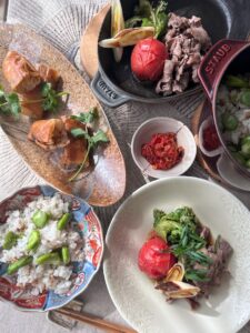今月の前半staub12カ月:香る春和食 ![]() ![]() ・春のトマトすき焼き ・空豆ご飯 ・新玉ねぎの春巻き ・不知火の米粉ケーキ すき焼きも冬のイメージが強いのですが、春バージョンに仕上げます。みずみずしい若いトマトのソースでいただきましょう 📖春のすき焼きの作り方、仕上げ方、旨味の出し方 ホクホク空豆は春の香り、ご飯と共に 📖空豆の加熱の仕方、混ぜご飯の作り方 甘い新玉ねぎは加熱と共にさらに増します、クミンの香りと共にジューシーな玉ねぎをパリパリ春巻きで 📖春巻きの作り方、加熱の仕方、仕上げ方 さわやかな酸味と甘みの不知火、米粉の弾力を味方に果肉と共にケーキに仕上げます 📖不知火ソースの作り方、シンプル米粉ケーキの作り方、仕上げ方 | |